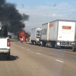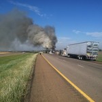 Fire crews put the fire out by 10:05 AM and one of the westbound lanes has been reopened.
