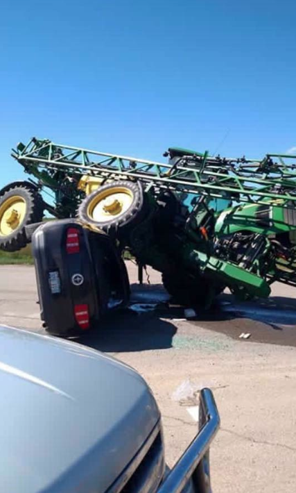 The vehicle failed to yield at a stop sign, pulled in front of and was hit by a John Deere Sprayer that was eastbound on U.S. 36.