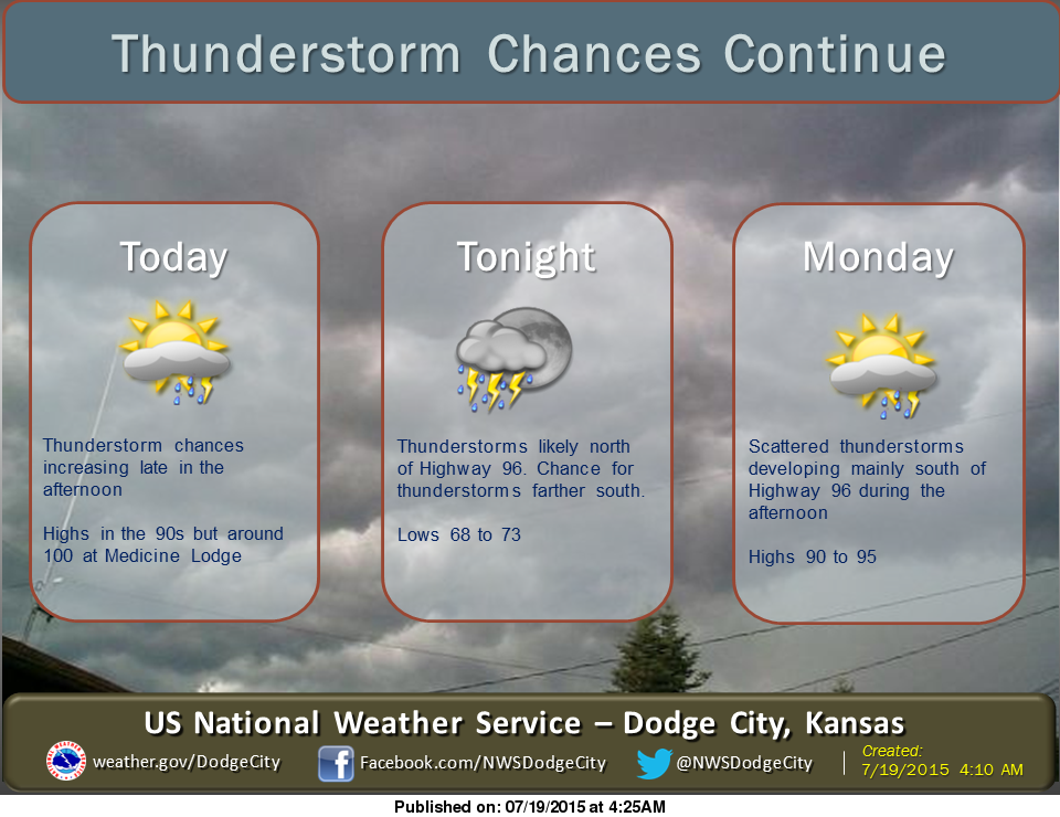 Monday: A 50 percent chance of showers and thunderstorms, mainly before noon. Partly sunny, with a high near 91. Calm wind becoming west northwest around 6 mph in the morning.