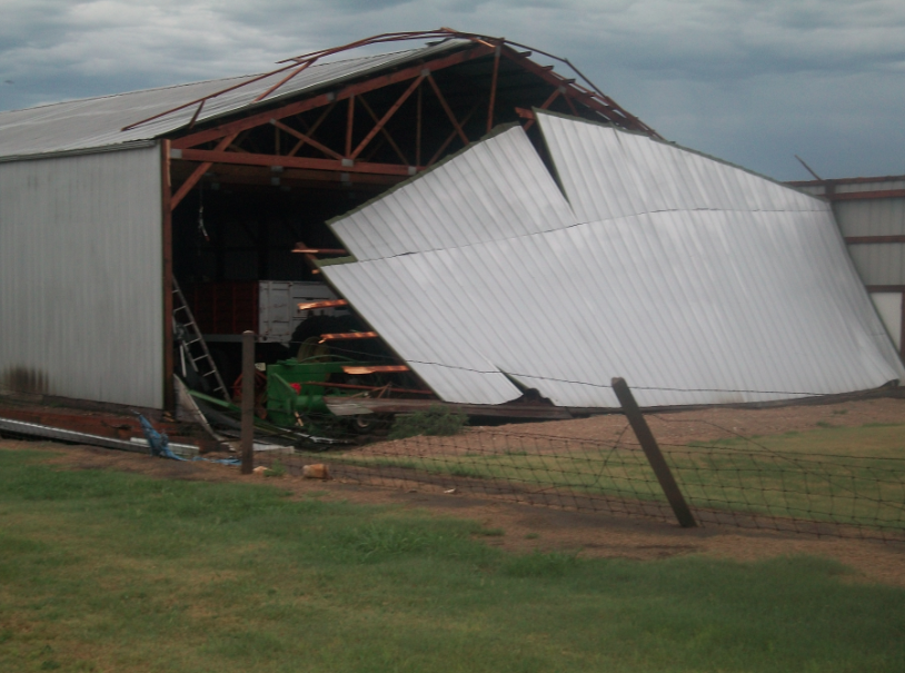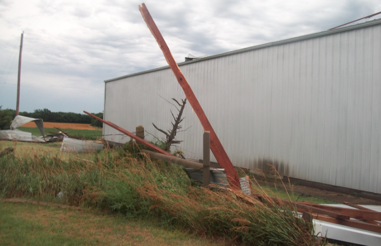 Storm responsible for damage in Russell Co. Posted on July 26, 2015 Photos Glenna Letsch RUSSELL COUNTY -Saturday night’s storm brought little moisture but strong winds to portions of Russell County. The Richard, Ronnie and Dennis Letsch farm located one block south of the elevator in Luray suffered significant damage but not injuries. The shed was built in 1975.