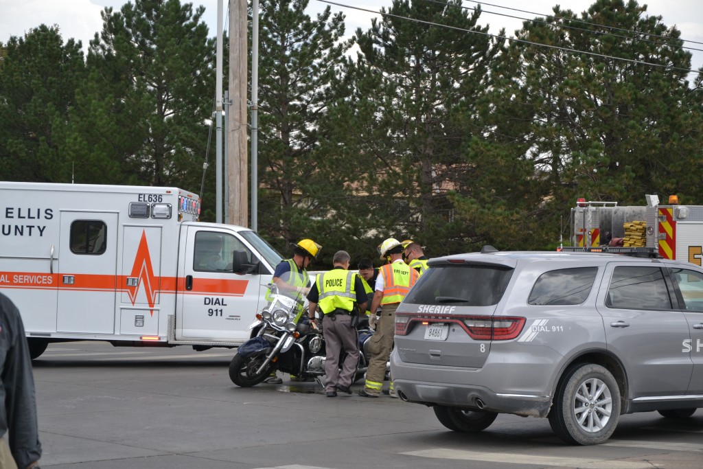 The extent of the motorcycle drivers injuries are unknown, but he was transported to Hays Medical Center for treatment.
