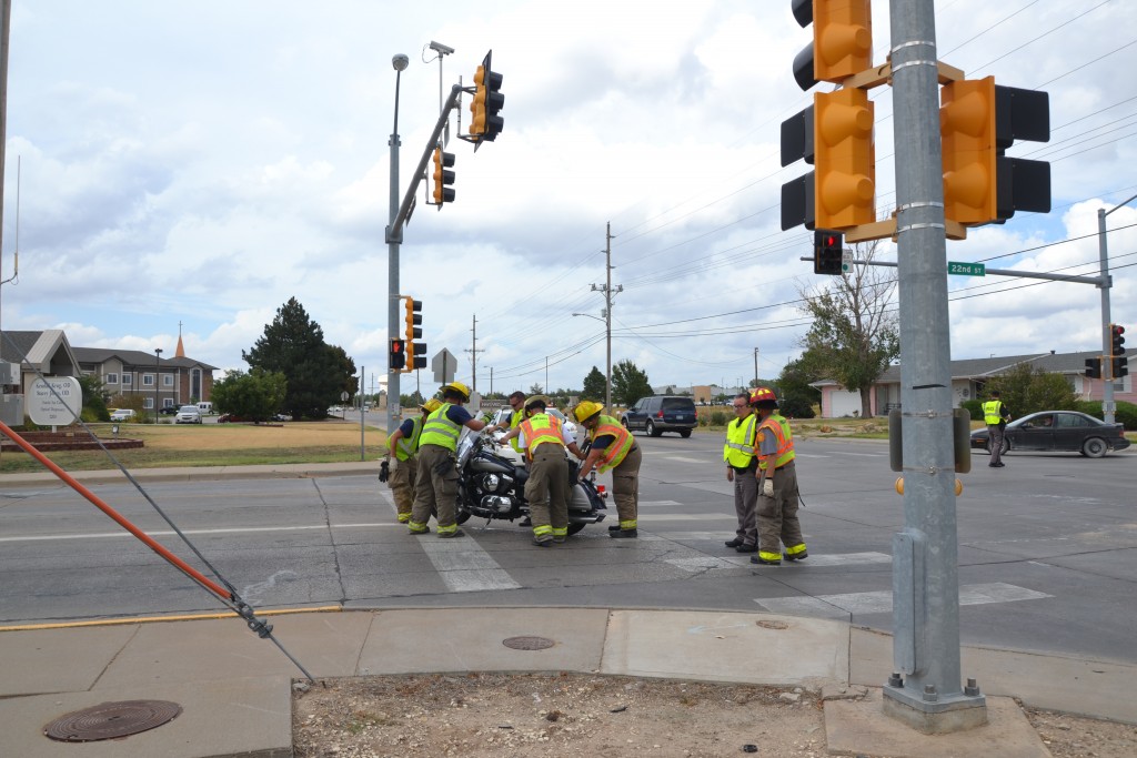 At approximately 3:20 p.m. Tuesday a traffic accident at 22nd and Canterbury sent one man to the hospital after a collision between a motorcycle and an SUV.