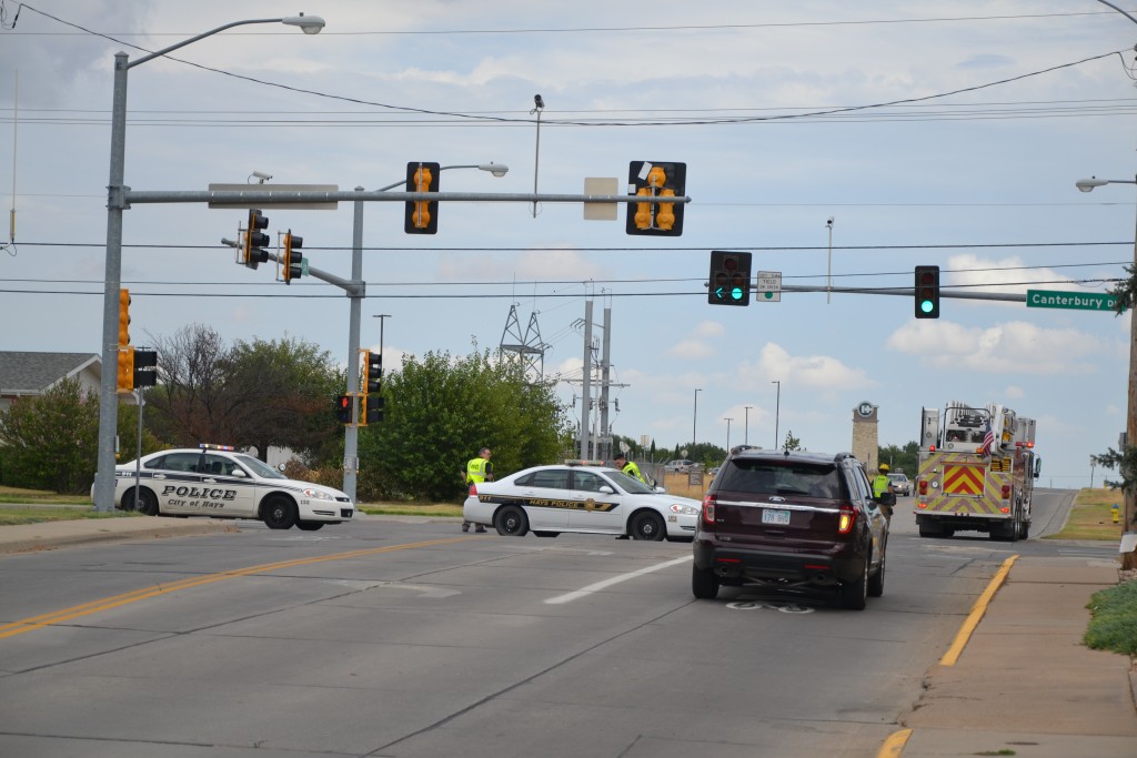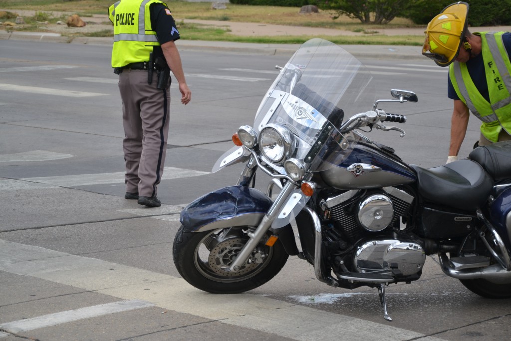 Hays Police and EMS were on the scene directing traffic around the intersection while crews moved the motorcycle out of the area and cleaned fluids leaking from the motorcycle.