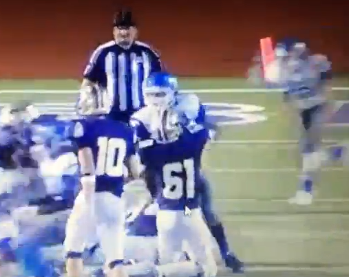 Video showed the referee watching the play, and his head snapping back when he is leveled from behind. The other player then dove on top of him. The team from John Jay High School in San Antonio was playing Marble Falls High School in Marble Falls, located about 90 miles north of San Antonio.