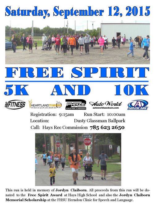 Proceeds from the race will go to the Free Spirit Award at Hays High School and the Jordyn Claiborn Memorial Scholarship at the Fort Hays State University Herndon Clinic for Speech and Language.