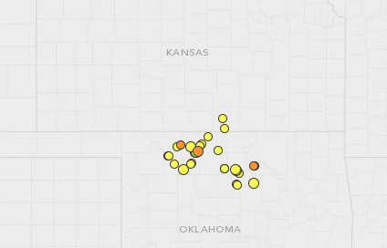 The Hutchinson News reports that in the past week, there have been 11 quakes within the neighboring Kansas counties of Sumner and Harper. U.S. Geological Survey data shows the most activity was in Sumner County, which experienced six quakes. That included four within one tight cluster near Caldwell – though on multiple dates – and two others nearly on top of each other.
