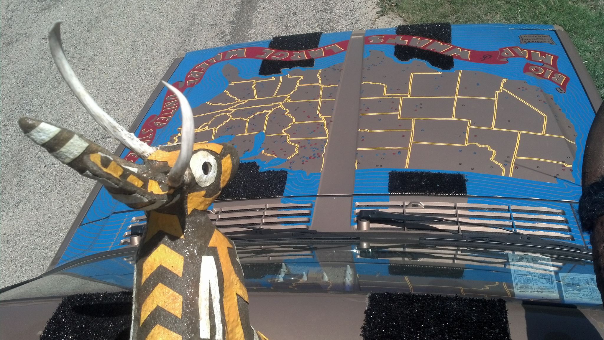 Nelson will drive the latest version of the mobile museum she calls the jeep-a-lope and leave it parked outside the library. The jeep has horns and a jackalope attached to the roof, she said.