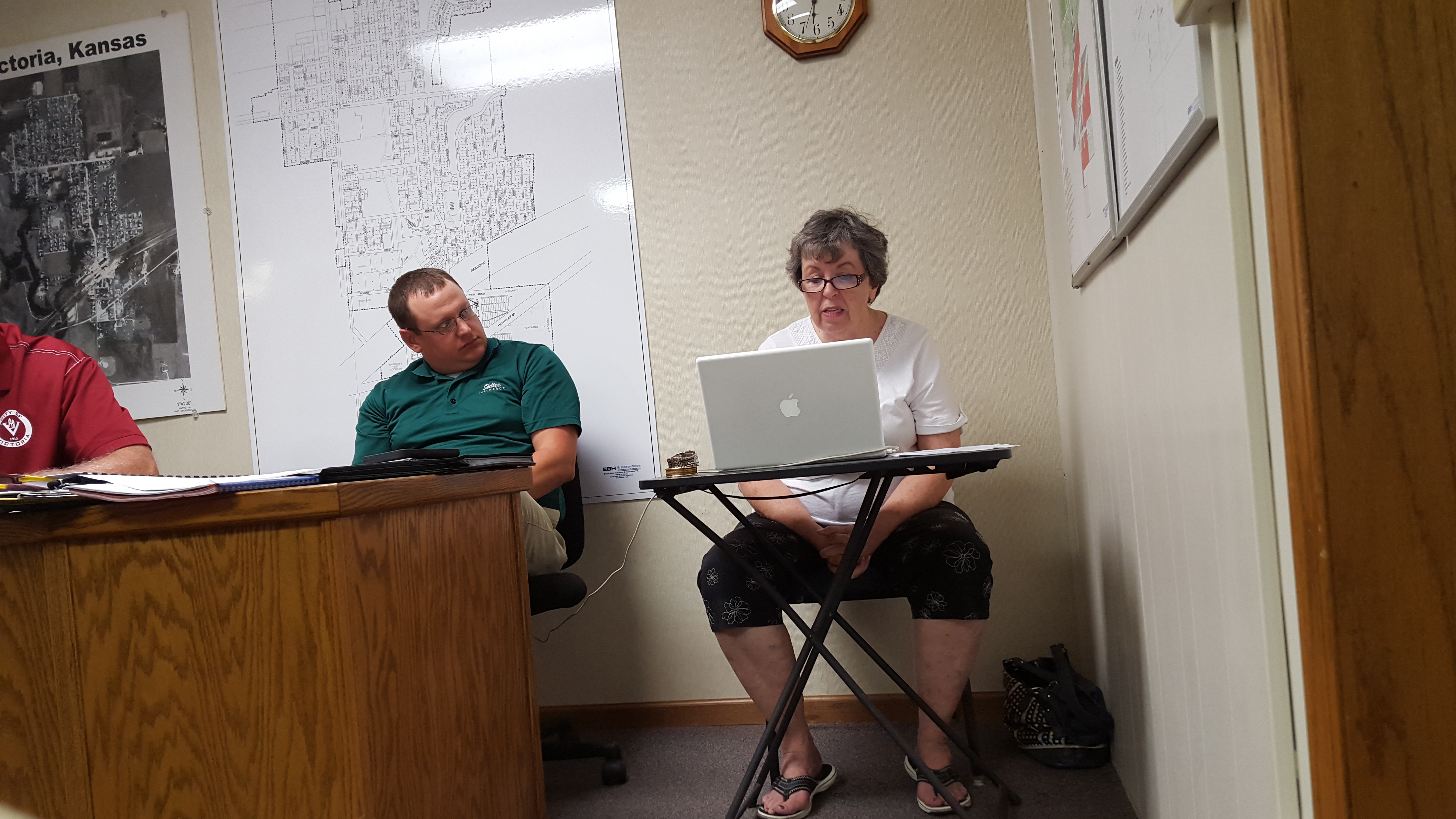 Nancy Piatt, Victoria Utilities Clerk, works with the City Council to craft a response to the city about the situation involving Kevin and Laura McCarter’s water supply.