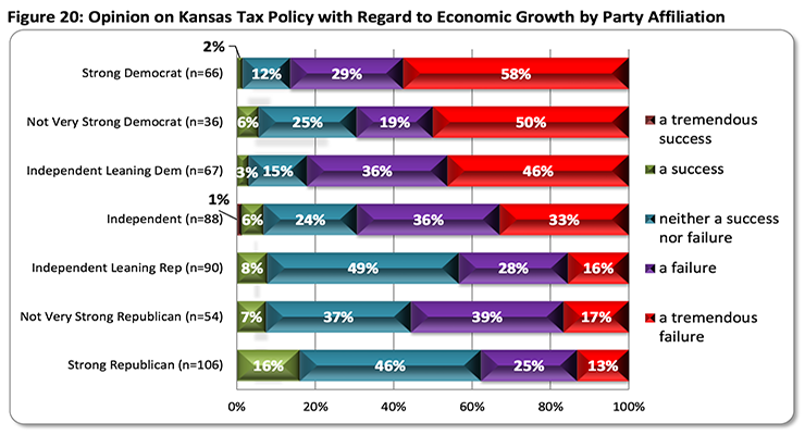 Sixty-one percent of respondents to the 2015 Kansas Speaks survey of public opinion in Kansas think that Gov. Sam Brownback’s tax policy has been a “failure” or a “tremendous failure” in terms of economic growth.