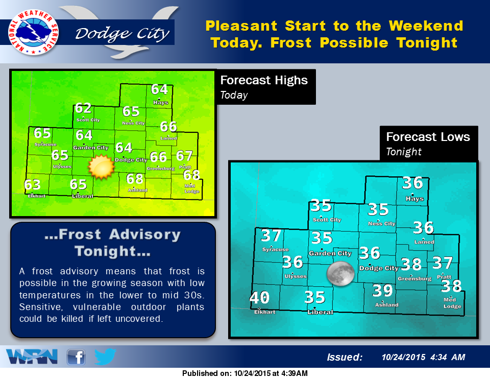 FileLCool high pressure will settle in across western Kansas to start the weekend. Light winds are forecast today as the center of the high will be positioned across west central Kansas. Highs will reach the lower to mid 60s.