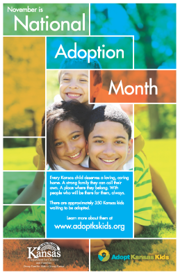 Nov. 21 is National Adoption Day this year. In several locations across Kansas, judges will finalize adoptions that have been coordinated by KVC and St. Francis. As the final step of the adoption process, these events are often emotional culminations of months of effort. Celebrations at Shawnee County Courthouse (9 a.m.) and Johnson County Courthouse (10 a.m.) will be open to the public and to media. On Nov. 20, a similar celebration of adoptions will be held at Wyandotte County Courthouse (1 p.m.).