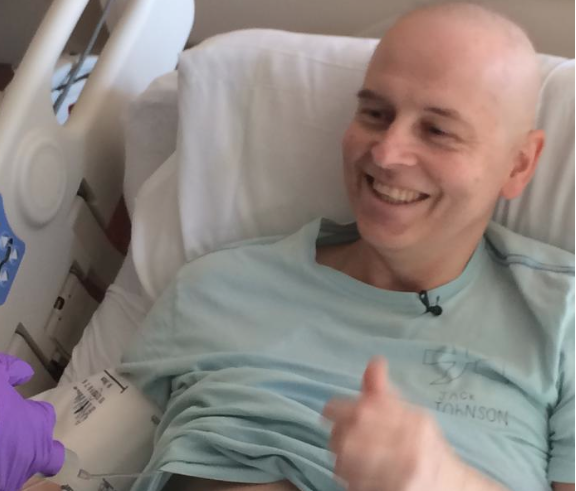 “They’re like super cells that are going to attack the cancer and we’ve got plenty in here for them to chase and chomp, so we’re hoping they do their job over the next couple of days,” Adams said minutes before a nurse injected him with the T cells.