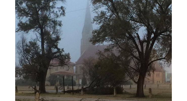 “Midwest Energy has at least four poles down with broken cross arms, south and west of Liebenthal,” Morley said Tuesday morning. He also counted about a dozen electrical poles snapped off for three-quarters of a mile along Highway 183 north of town. “The Western (Co-op Electric) truck from WaKeeney is in town, too.”