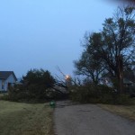 “I didn’t see any twisting, so I assume it was just wind — really strong straight winds,” Huenergarde said. When he ventured out of his house, Huenergarde reported seeing “debris and trash all over and many big trees blown over. The neighbor’s trampoline was blown over a block away.” His house was “plastered with leaves, small twigs and other stuff.”