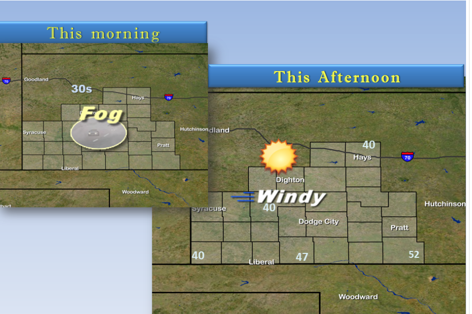 Widespread fog is forecast across the area this morning, with areas of dense fog reducing visibility to a quarter mile or less. The dense fog will dissipate through the mid morning hours as west winds develop and become windy in the 25 to 35 mph range by early afternoon. Highs will range mainly in the 40s this afternoon.