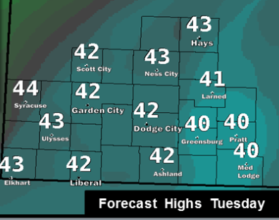 Temperatures continue around seasonal averages with highs in the lower 40s across much of the area. Winds will be on the increase, especially Tuesday, as a trough develops in advance of an upper level storm system.