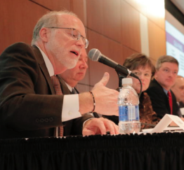 As Kansas lawmakers looked on, Tom Bell of the Kansas Hospital Association made a point Tuesday at a forum on Medicaid expansion held at Johnson County Community College. MIKE SHERRY / HEARTLAND HEALTH MONITOR