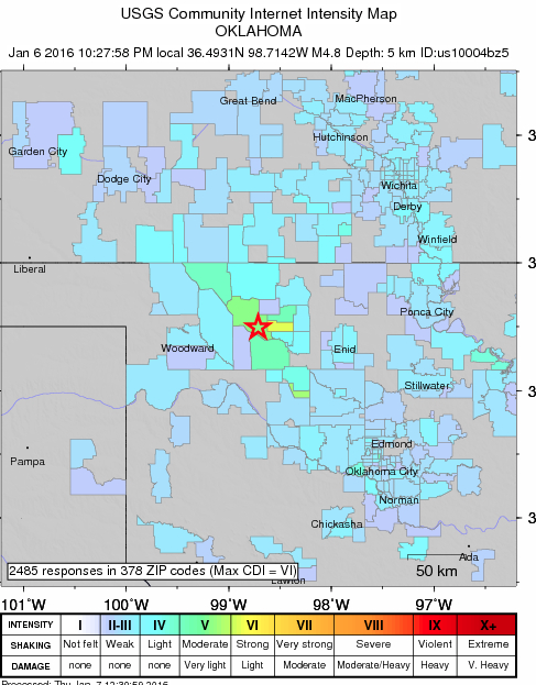 FAIRVIEW, OK – Numerous earthquakes shook Oklahoma just after 5 a.m. on Thursday and Wednesday evening, according to the U.S. Geological Survey.