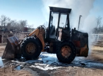 A front end loader used to feed cattle that morning was parked in the shed and it was on fire.