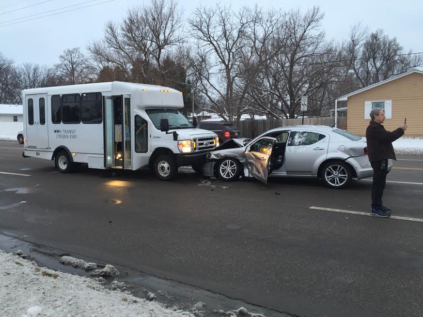 The collision caused the Dodge to strike a 2014 Ford OCCK bus driven by Tawnie Marie Heard, 35, Salina, that was northbound on Ohio and stopped waiting to turn onto Republic