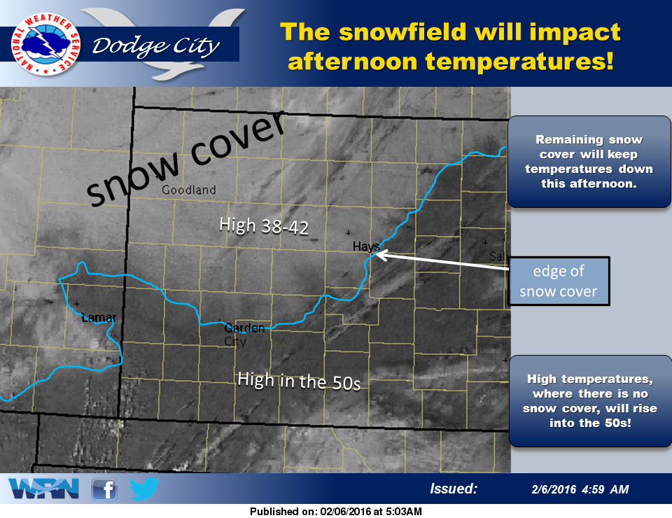 Residual snow cover will continue to impact temperatures today where readings will be near 40. Temperatures will be 10-15 degrees warmer where there is no snow on the ground.