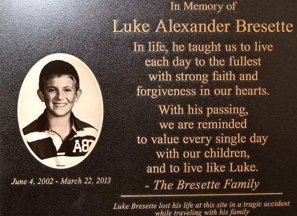 Luke’s father, Ryan Bresette, says the family appreciated the airport’s gesture. He described the plaque as “absolutely beautiful.”