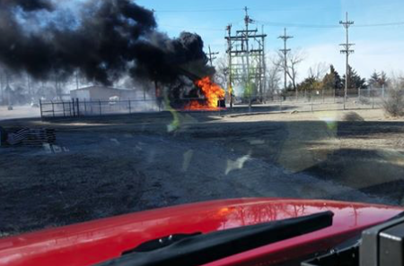 Upon arrival they found an electrical substation on fire. While waiting for Westar to arrive to secure the electricity, the transformer exploded.