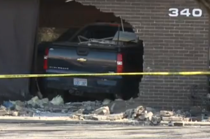 Wichita police Lt. Jason Stephens said Monday that officers were called to a security alarm going off at a building around 4 a.m. Sunday and discovered that the alarm had been triggered by a vehicle that had driven through the front of the business.