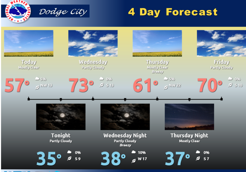 Wednesday NightPartly cloudy, with a low around 39. Northwest wind 9 to 14 mph.