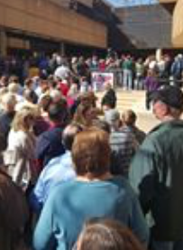 In Wichita, Democrats lined up down the block outside the machinists’ union headquarters to get in to caucus. In the end, there were too many people to fit into the union hall so the caucus was held outside.