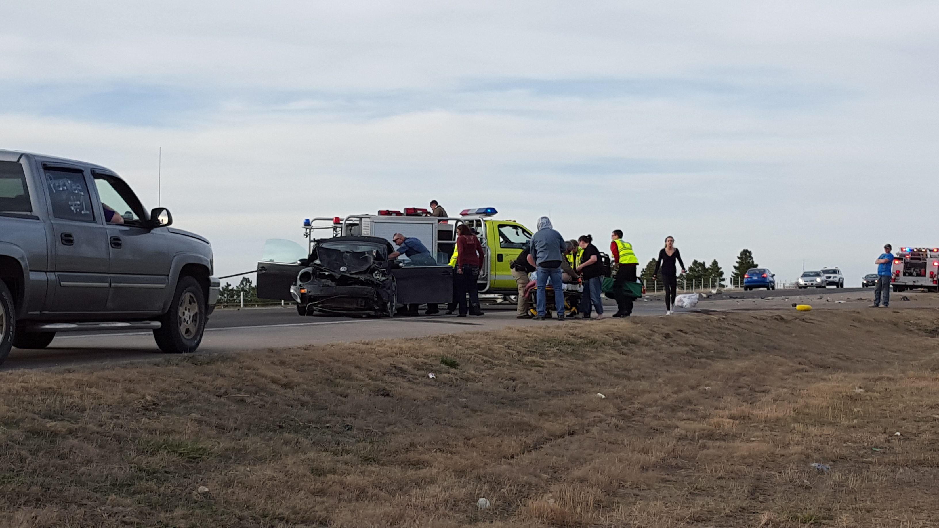 Details are unavailable at this time, but EMS had transported one person from the scene by 5:30 p.m. and responders were working to remove vehicles and debris in order to reopen the highway for at least an hour after the accident.