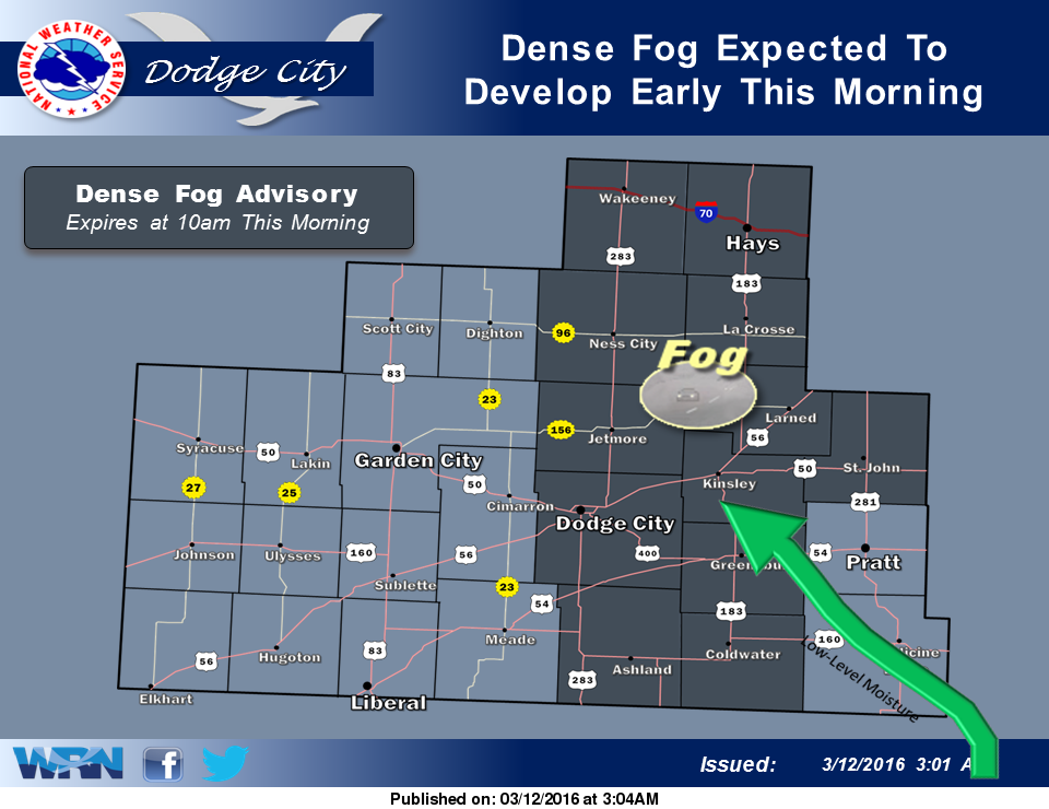 Dense fog is expected to form early this morning as low level moisture pushes northwest into a cooler airmass. Visibility is forecast to fall to one-quarter mile or less in some areas. A Dense Fog Advisory is in effect until 10am.