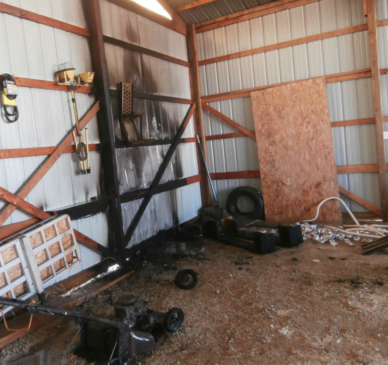 The fire damaged several items inside the shed, including a push mower and a snow blower. Total damage caused by the fire was estimated at $1,945.