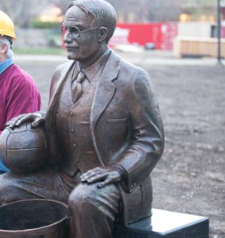 The elder Tefft worked from photographs of Naismith to capture his likeness and wanted a sculpture that people could interact with, sit beside and be photographed with.