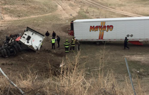 The truck hit the concrete barrier of a bridge and the trailer disengaged from the cab.
