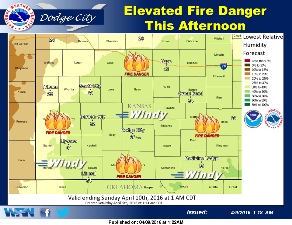 Today will be partly to mostly sunny and windy, with south winds gusting up to 25 mph at times. High temperatures in the mid 70s. There is a slight chance for a shower or thunderstorm tonight. Tonight will be mild, with temperatures only dropping to near 50. Sunday will be a little cooler, with highs in the lower 70s.