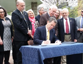 Representatives from a national advocacy group, legislators and Kansas Department of Corrections officials joined the signing event Monday outside the Johnson County Courthouse in Olathe.