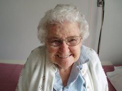 Hulda Ella was born to Peter J. and Anna Franz on April 6, 1921, in rural Canton, Kansas. She was the youngest of seven children. She married Cornelius D. Goossen on June 2, 1942, after which they settled on a farm near Mingo, Kansas. Eight children were born to the union. She is loved and remembered well by her family: Vernon and Linda Goossen of Mingo, Kansas; Simon and Carolyn Goossen of Westminster, Colorado; Andrew and Sheryl Goossen of Pryor, Oklahoma; Harold and Priscilla of Lincoln, Nebraska; Othelia and Bernie Vacura of Oberlin, Kansas; Tim and Micki Goossen of Goodland, Kansas; Arleta Wiebe of Elbing, Kansas; and Erna Goossen of Norton, Kansas. Hulda was predeceased by her husband, a son-in-law, Kevin Wiebe, and a grandson, Scott Goossen. She leaves many who will remember her including 23 grandchildren, and their spouses, 44 great-grandchildren, and 2 step-great-great-grandchildren.