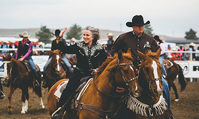 Fort Hays State University President Mirta M. Martin agreed to ride in the opening ceremonies for the public performances, no matter what the weather.