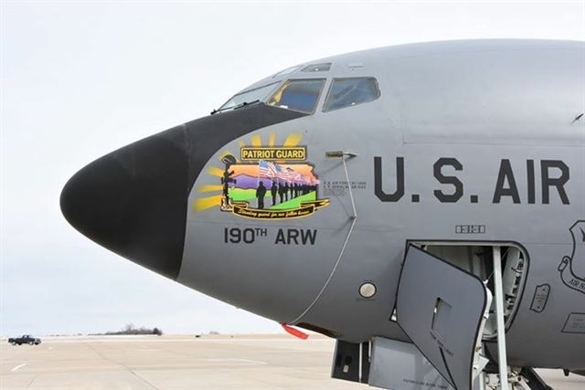 TOPEKA–To honor the Patriot Guard and their commitment to fallen heroes, the 190th Air Refueling Wing, Kansas National Guard, will dedicate the nose art on a KC-135R Stratotanker at the Topeka Combat Air Museum, 7016 SE Forbes Avenue, Forbes Field, Saturday, April 30. The dedication ceremony will begin at 11:30 a.m.