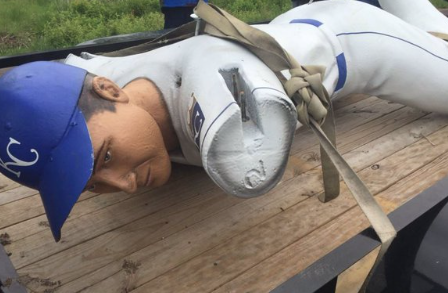 KANSAS CITY- A cutout of a Kansas City Royals baseball player taken from a billboard on Interstate 435 near East Truman Road was found on Friday morning in some nearby brush, according to Lamar Advertising.
