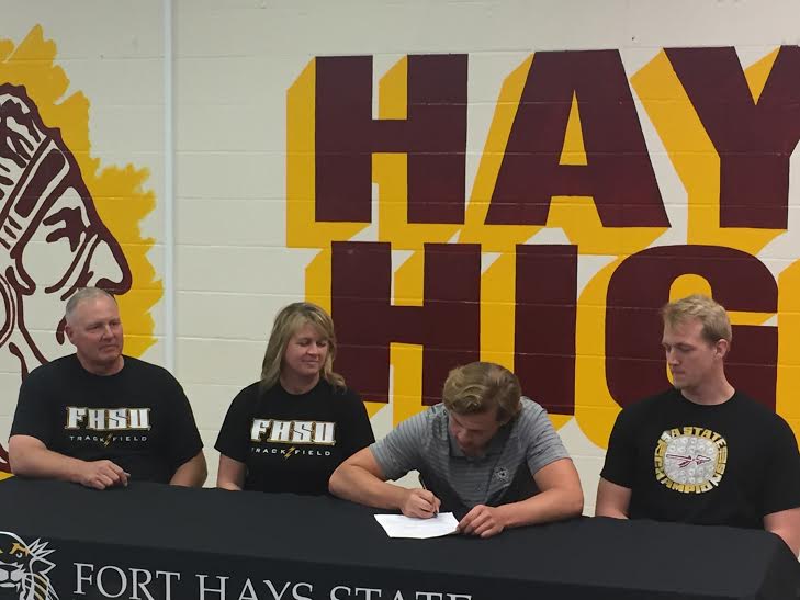 The senior signed his national letter of intent on Tuesday morning, joining his brother and sister as FHSU athletes. Kylie ran cross country and track while Zach just finished up his senior season with the football team.