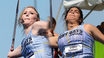 While Lopez threw the javelin for a year at the University of Valencia before coming to Fort Hays State, Wolf had no thoughts of trying the event until she contracted pneumonia during basketball season her senior year in high school, then opted not to participate in her normal running events during track season.