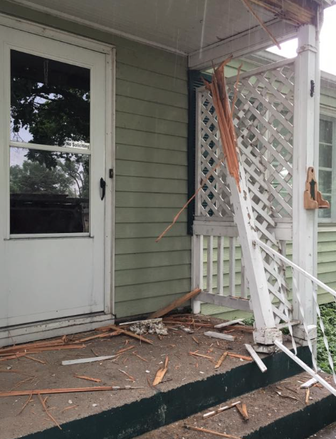 Pieces of bark, wood from the porch, siding, and the American flag were all blown out into the street covering a 25-foot radius.