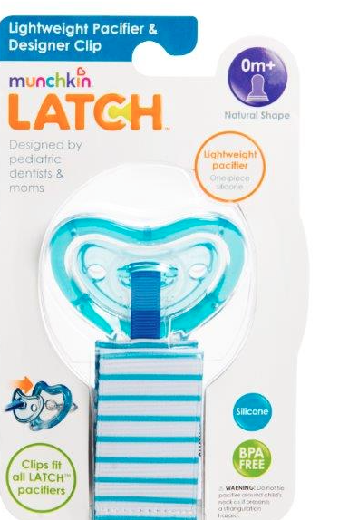 The federal Consumer Product Safety Commission says the recall involves Munchkin-brand Latch lightweight pacifiers and clips, which are sold as a set. The commission says the clip cover can detach from the clip itself, creating a choking hazard.