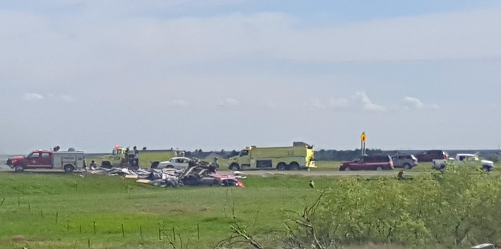 While the cause of the accident is still unknown a semi truck carrying building materials had overturned and came to rest on the north side of the westbound lane. A pickup also involved in the accident came to rest between the east and westbound lanes and caught fire.