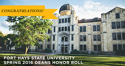 Deans at Fort Hays State University have named 1,341 students to the Deans Honor Roll for the spring 2016 semester.