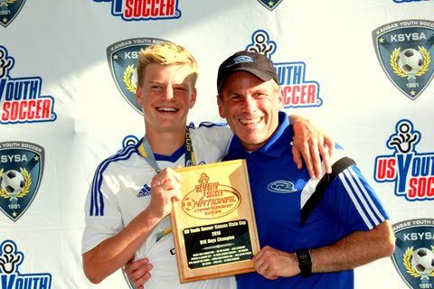 Zach is pictured with Assistant Coach Matt Ruark who originally scouted Zach and brought him aboard his Kansas City team four years ago. The team next travels to the Region II Youth Soccer Championship held in Indianapolis from June 24 to 29.