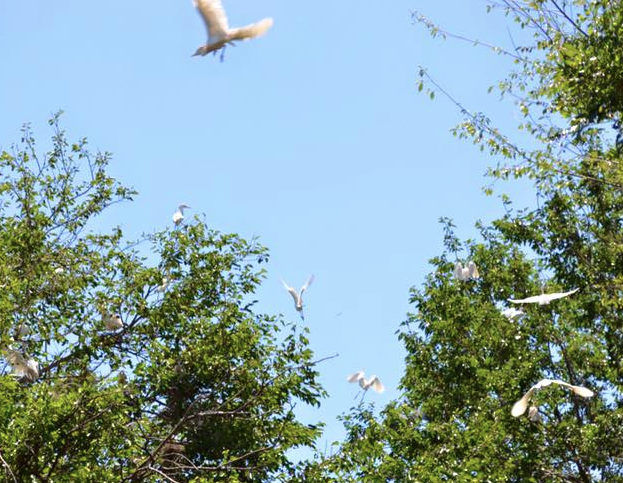 The birds are protected by federal law and it is illegal to injure or kill them. Individuals also cannot harass or move the Egrets once they have nested.