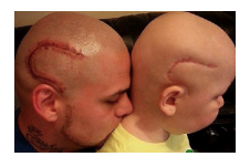 WICHITA, Kan. (AP) — The father of a Kansas boy who was self-conscious about scarring following brain cancer surgery has got a tattoo that resembles his son’s scar on the side of his head.